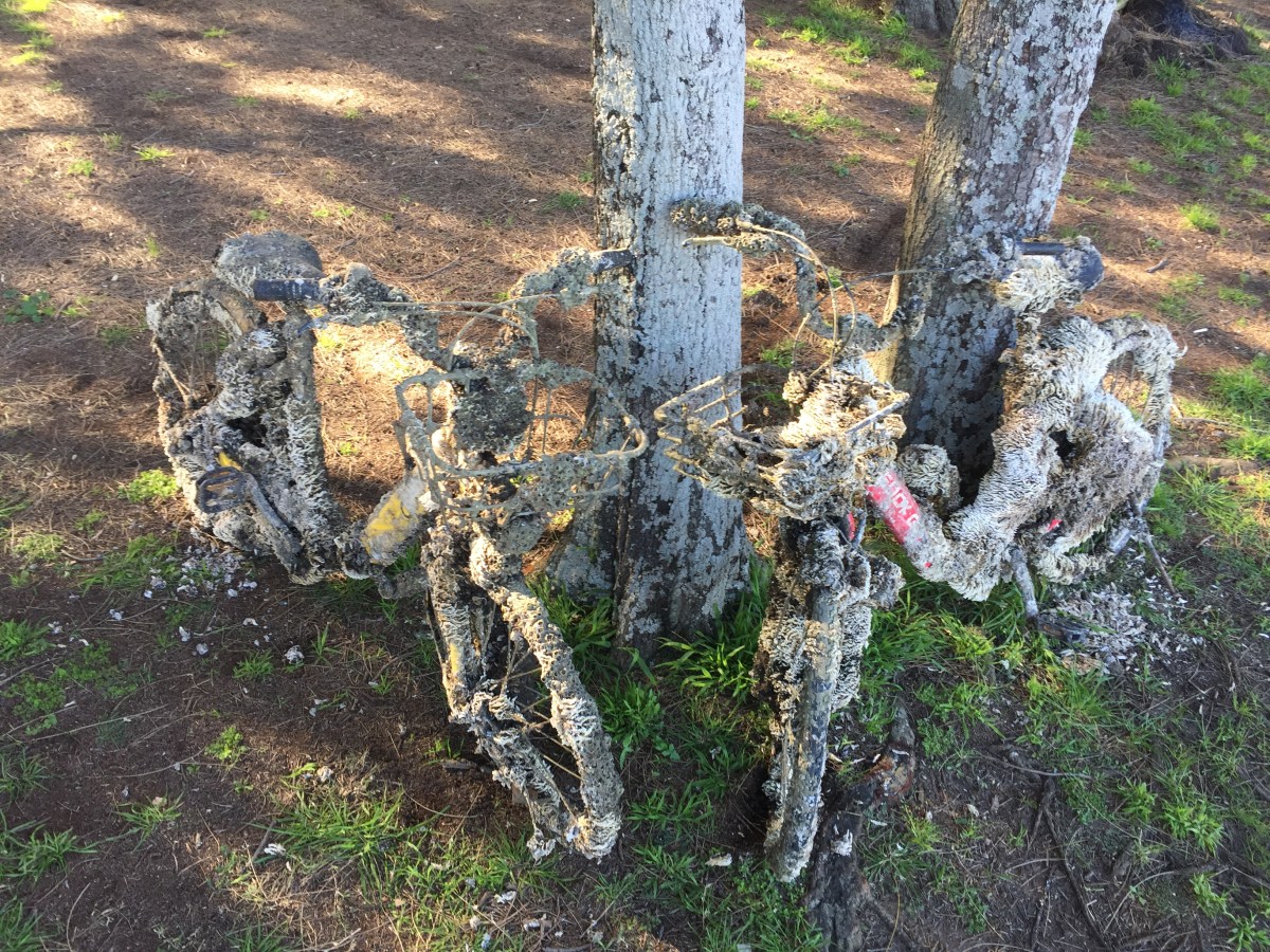 PIX: Pushies of Poseidon, Batman! This pair of two-wheeled retirees were rivals in their working lives but have grown romantically attached in their post-aquatic golden years. Found right outside the Concordia Club by the Cooks River near Tempe Station.